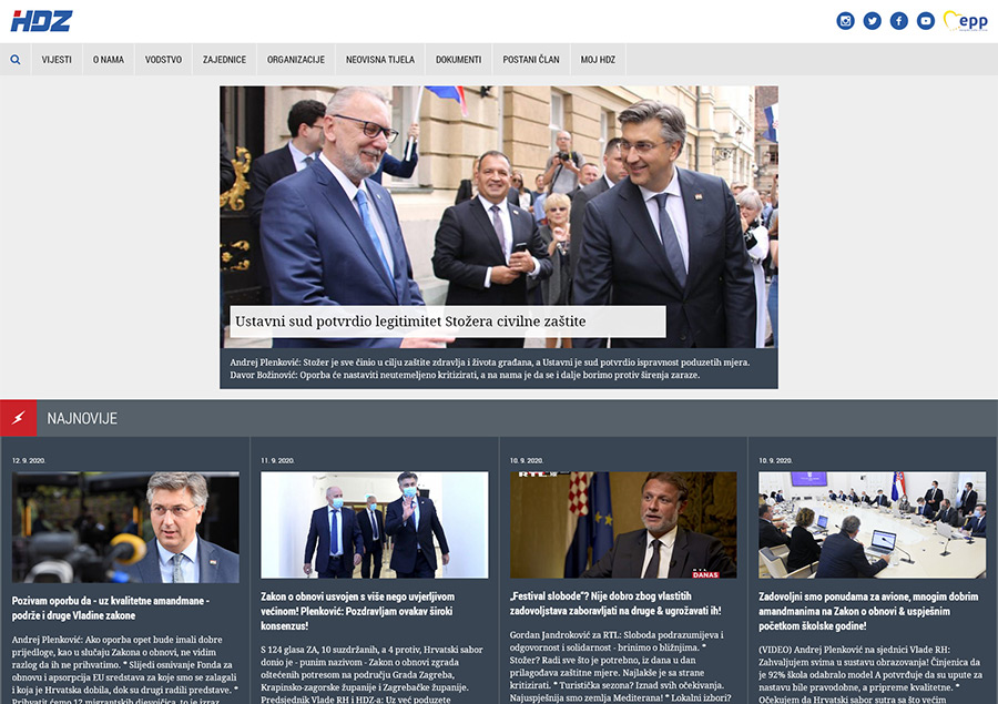 HDZ Croatian Democratic Union, political party, Zagreb (2019) Custom content management system Language: Croatian Previous / Next