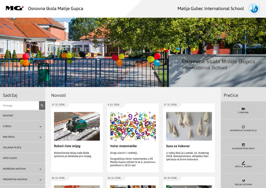 Osnovna škola Matije Gupca Školske stranice, Zagreb (2018) Sustav za upravljanje sadržajem po mjeri Jezici: hrvatski, engleski Natrag / Dalje