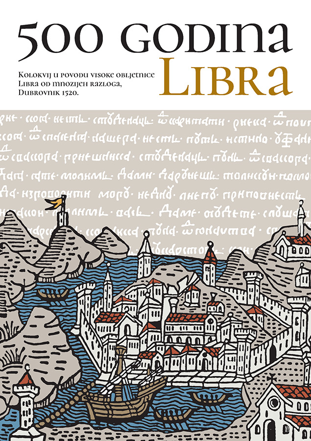 500 godina Libra Plakat i program za kolokvij Odsjeka za kroatistiku zagrebačkoga Filozofskog Fakulteta (2020) Dimenzije plakata: 70 × 100 cm. Format programa: A5. Natrag / Dalje