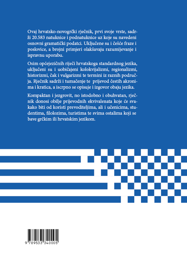 Hrvatsko-grčki rječnik Oblikovanje omota. Izdanje Filozofskog fakulteta Sveučilišta u Zagrebu (2020) Natrag / Dalje