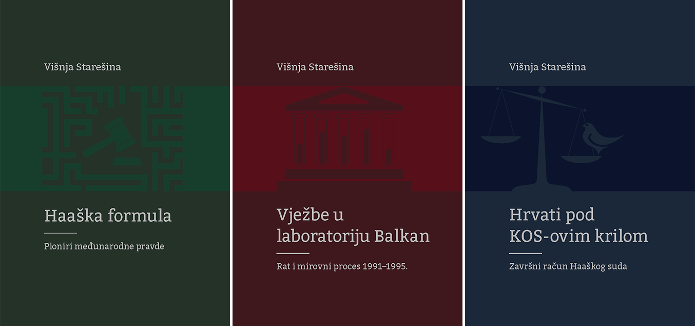 Knjige autorice Višnje Starešina »Haaška formula«, »Vježbe u laboratoriju Balkan« i »Hrvati pod KOS-ovim krilom«, Zagreb, 2018.
